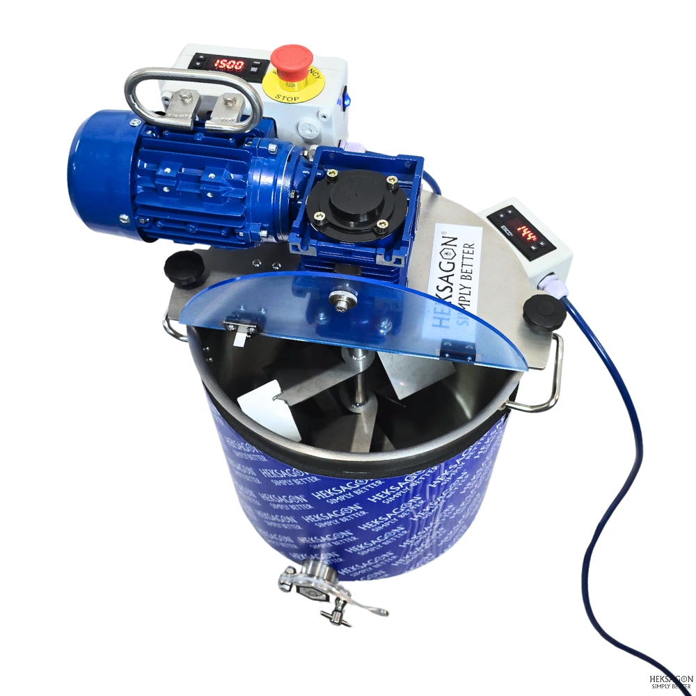 Kremownica PREMIUM z grzaniem to nowoczesne i profesjonalne urządzenie dla wymagających pszczelarzy. Umożliwia pełną kontrolę nad procesem kremowania miodu – od płynnej postaci aż po idealnie gładką i smarowną konsystencję. Dzięki wbudowanemu systemowi grzania oraz precyzyjnemu programatorowi, urządzenie pozwala na utrzymanie optymalnej temperatury i automatyczne sterowanie cyklem pracy. Umożliwia mieszanie miodu z dodatkami typu owoce liofilizowane, pyłek pszczeli, przyprawy. Posiada funkcję dekrystalizatora przydatną przy skrystalizowanych miodach. Może być używana również jako odstojnik.
